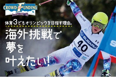 「アルペンスキーで世界を目指すには、どうしてもお金がかかってしまいます。環境面で劣る日本人が世界を目指すためには、積極的に海外経験を積むしかありません!スキー人口が減るとスキー産業界も縮小しスキー選手の育成にも大きな影響を与えます。クラウドファンディングはそれを少しでも解消するシステムであると思います。 どうか皆さんの力を貸してください! 応援、支援を宜しくお願いします!」
