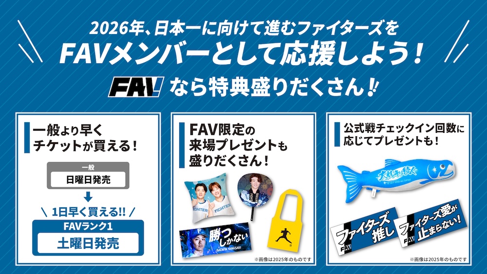 北海道日本ハムファイターズでは、FAVメンバー限定の「選手デザイン刺繍キャップ(ピンズセット)」を、1月26日(月)から2月9日(月)まで、オフィシャルオンラインストア限定で受注販売いたします。