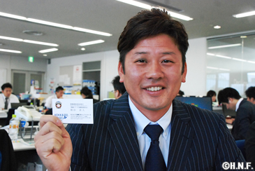 球団事務所内に専用のデスクも用意された稲田氏。「自分の机が職場にあるのは社会人時代以来で、結果はどうあれ一生懸命頑張ります」と、スーツ姿にやや緊張した面持ちを浮かべながら話しました。今後は週1~2回程度、企画会議に参加して選手に近い立場から様々な提言をしていくことになります。チームの開幕ダッシュを大入りのスタンドで後押しすべく、会議でアイデアを生み出していく様子は野球解説を務める札幌テレビ放送(STV)の「どさんこワイド179」をはじめ各種番組の中でご紹介いただく予定です。