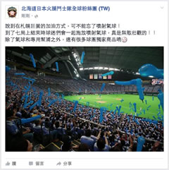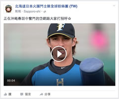 北海道日本ハムファイターズは、プロ野球12球団では初となるソーシャル・ネットワーキング・サービス(SNS)の新サービス『北海道日本ハムファイターズ 公式 Facebook グローバル(北海道日本火腿鬥士隊全球官方粉絲團)』を2月1日(月)13:00よりスタートいたします。本サービスは主に、陽岱鋼選手の出身地であり、昨年11月に国際大会「世界野球WBSCプレミア12」が開催され、近年ファイターズファンが急増している台湾向けに『北海道日本ハムファイターズ 公式 Facebook』を中国語(繁体字)に翻訳し、情報を配信するものです。また、本サービスでしか見られないオリジナルコンテンツやリンク先からファイターズ観戦チケットが購入できるなど、ファイターズ情報が便利に盛りだくさん!本サービスを利用して、今シーズンの陽岱鋼選手の活躍そして日本一を目指す北海道日本ハムファイターズを応援しよう!