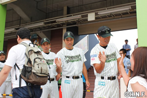 監督・コーチ・選手によるウェルカム・ハイタッチ