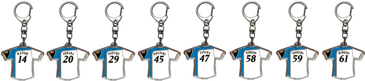新入団選手ユニフォーム型キーホルダー 各550円(税別)