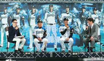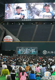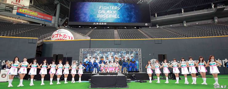 2016年シーズン、札幌ドームにて行われるファイターズ主催試合のテーマを「FIGHTERS GALAXY BASEBALL(ファイターズ ギャラクシー ベースボール)」として、「壮大な宇宙」や「銀河系」をイメージしたイベント、演出、スタジアム装飾を展開し、“宇宙一”のチームを目指すファイターズ。その概要発表を、3月5日(土)の試合終了後、札幌ドームグラウンドにて「FIGHTERS GALAXY BASEBALL TAKE OFFイベント」として開催しました。