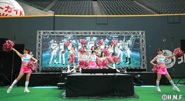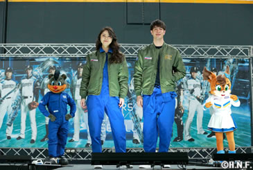 「未来の宇宙アイドル」をイメージした新生ファイターズガール。衣装はSF感を際立たせたデザインで、ジャケットの裾は3パターンのバリエーションを楽しめるスタイル。新生ファイターズガールを代表して五十嵐さんが「最高の笑顔とパフォーマンスでファイターズを勝利に導きます!」と宣言。