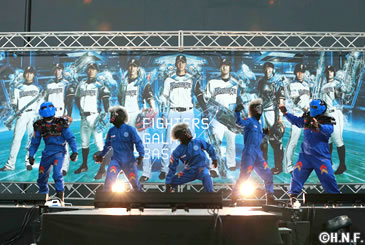 ファイターズを宇宙一にする為にやってきた謎のパフォーマンスユニット「HIGH FIVE BOYZ(ハイファイブボーイズ)」がダンスを披露。さらに、シーズン中10万回を目標にファンの皆様とのハイタッチでパワーをチャージし、宇宙一を目指すファイターズへギャラクシーパワーを注入します。
