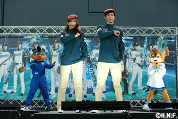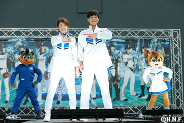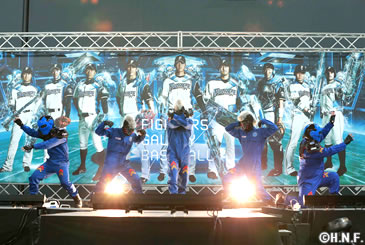 新生ファイターズガールのお披露目、謎のパフォーマンスユニット「HIGH FIVE BOYZ(ハイファイブボーイズ)」によるダンス披露、スタジアムスタッフの新ユニフォームファッションショー、そして最後は大野選手・大谷投手のペシャルトークショー。3,202名が見守る中、2016年の「FIGHTERS GALAXY BASEBALL(ファイターズ ギャラクシー ベースボール)」として、すべてに宇宙一を目指すファイターズの意気込みと挑戦の全容をお披露目しました。
