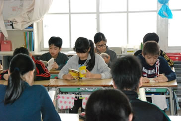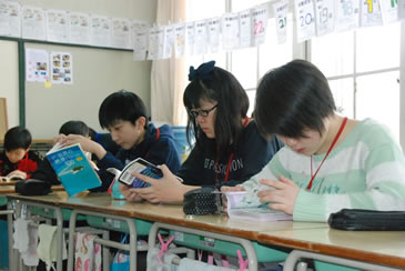 音源には校内一斉読書の開始と終わりを告げるコメントや、望ましい生活習慣の確立を呼びかけるメッセージを22選手分収録。3月18日(金)は恵庭市立柏小学校での活用の様子が報道公開され、8:15、大谷翔平投手のアナウンスを合図に全校児童が朝の一斉読書を始めました。子どもの読書活動優秀実践校として2011年度文部科学大臣賞を受賞し、普段から活字に親しむ同校の児童たちも「大谷投手のファンなのでうれしかった」などと口々に話していました。