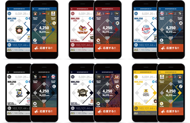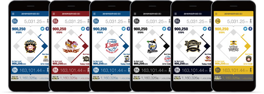 『パ・リーグ ウォーク』は、全てのスマートフォンに対応しており、ファンは一度アプリをダウンロードすれば、後は自動的に歩数が計測される仕組みです。ファンはまず自分が応援する球団を選択します。日常的な利用では、「本日の歩数はダイヤモンド何周分です」と表示が出たり、応援する球団の選手が画像で「今日はたくさん歩いたね!」などと呼びかけてくれます。試合日の利用では、応援する球団毎にファンの合計歩数を競ったり、合計歩数の順位を表示したりします。(※1)