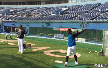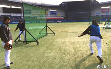 千葉ロッテマリーンズとの開幕戦を翌日に控えた3月24日(木)、北海道日本ハムファイターズはQVCマリンフィールドで前日練習を行いました。23日の練習で守備の連係などを確認していることもあり、この日は打撃練習を中心としたメニューを消化。約2時間にわたって汗を流し、2016年のスタートに備えました。