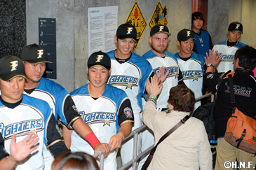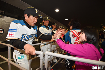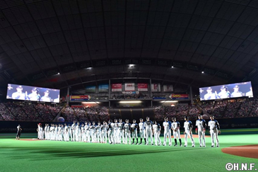 開場時には2004年から続けている選手、監督、コーチによるウエルカムハイタッチでご来場者をお出迎え。手のひらから伝わるファンの皆様の期待を感じ取り、満員で膨れ上がったスタンドの雰囲気にも後押しされ、10年ぶりの日本一へナインはいっそう思いを強くしていました。