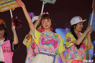 「SAPPORO COLLECTION 2016」トップバッターでオープニングステージに上がった八木アリサさんがベースボールシャツを身に付け再び登場すると会場は大盛り上がり。札幌ドームとは一味違う大歓声の中、野球と関わりの少ない女性にもお楽しみいただき、“カワイイ”ファイターズを存分に表現した“Fighters for Girls STAGE”となりました。