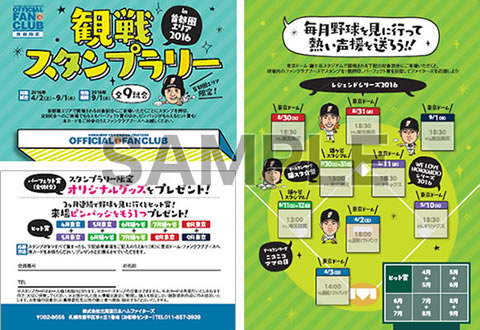 各日先着3,000名様のファンクラブ会員には《WE LOVE HOKKAIDOシリーズ2016》限定ユニフォームをプレゼント!プレゼント配布方法はこちらをチェック。また、観戦スタンプラリーカードをお持ちの方は観戦当日お忘れないようにお願いいたします。