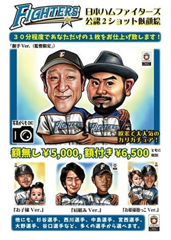 カリカチュアアーティストによるあなたとお好きなファイターズ選手のツーショット似顔絵を描きます。お一人様あたり約30分で専用台紙にツーショットが完成です!