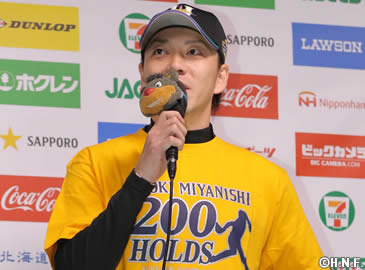 北海道日本ハムファイターズの宮西尚生投手が5月14日(土)、埼玉西武ライオンズ10回戦(札幌ドーム)にてプロ野球史上2人目(パシフィック・リーグ史上初)となる通算200ホールドを記録いたしました。入団9年、478試合目での達成です。