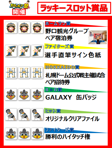 6月8日(水)~12日(日) の《Fighters for Girls Days》前半戦は、〈GALAXY BINGO〉や〈ガチャポン祭〉、〈39プレゼント〉など楽しい企画が満載!とにかく女性に優しいこのイベント!!お得なこの期間にぜひご来場お待ちしております!!
