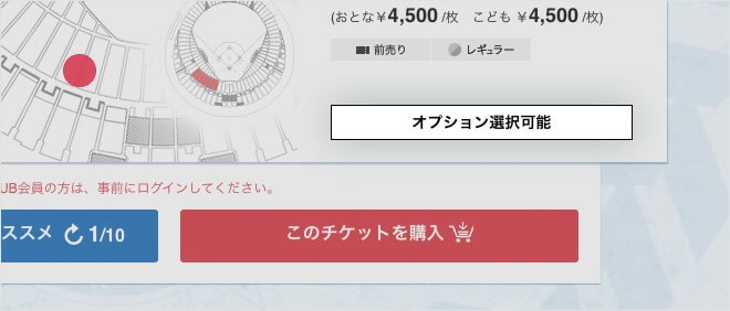 オプションが選択可能な場合は、オススメチケットで「オプション選択可能」と表示されます。