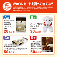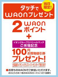 当日、会場にてWAONカードを購入された方はもちろん、日頃よりWAONカードをご利用の皆様に来店ポイント(2WAONポイント)をプレゼントします。