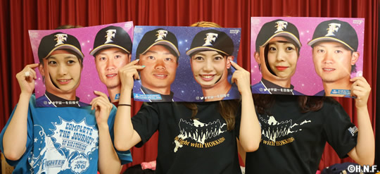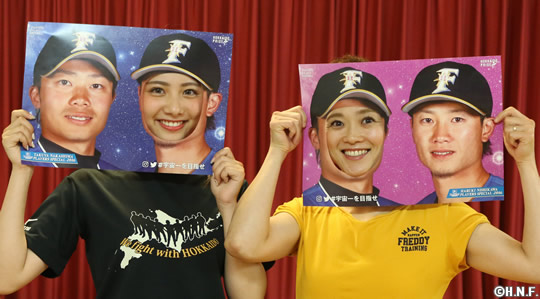 北海道日本ハムファイターズは6月29日(水)の埼玉西武ライオンズ戦で実施する「プレイヤーズスペシャル中島卓&西川」のイベントの一環として来場先着30,000名様に「卓也&遥輝なりきり応援ボード」をプレゼントする事が決まりましたので、お知らせいたします。「卓也&遥輝なりきり応援ボード」は片面に中島卓選手、もう片面には西川選手の顔抜きとなっている応援ボードで、顔をあてるとそれぞれの選手になりきって応援する事ができます。その他オリジナルムービーの放映やファンクラブ会員限定で巾着のプレゼントなど、2選手に特化した演出を予定しています。