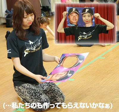 (ほぼ)実寸大の2人の顔で作成されたこのボード。お気に入りの選手の側を向けて飾ってもいいのですが、そこは使ってこその応援グッズ!
