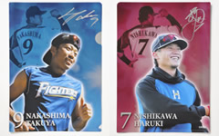 さらにさらに、ピンバッジガチャポンなら10回、ボンフィン・ポスター・フィギュアガチャポンならそれぞれ5回を一度にチャレンジしていただくと、中島卓&西川選手オリジナルクリアファイルをプレゼント!両選手のオフショットがキラキラと輝く非売品の激レアクリアファイルは無くなり次第終了!!