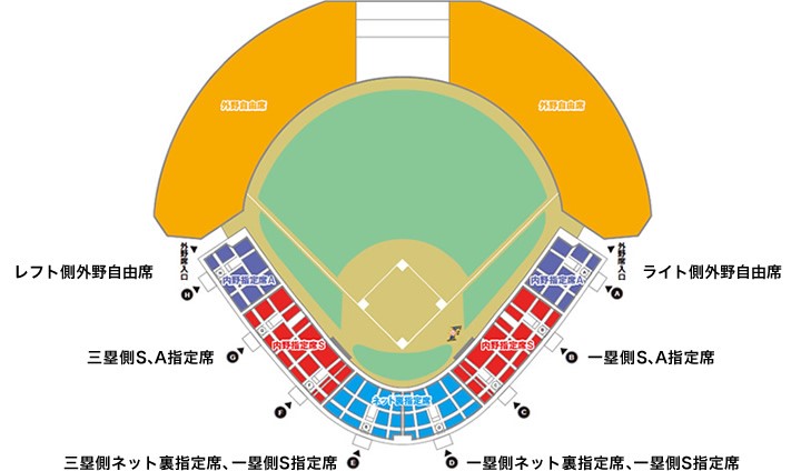 - 内野指定席入場ゲートでの敷物等による場所確保は認められておりません。予めご了承ください。