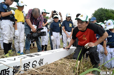 栗の樹ファームでの植樹活動は今回で3年目。過去に植えた苗はエゾシカなど野生動物の食害にあったり枯れてしまったりで、半分近くがうまく生育せず改めて根気のいる作業だということが分かりました。関東遠征出発前にひと汗かいた栗山監督は「選手を育てるのと一緒で、北海道の次の世代に何かを残していくことは大変だけれど意味がある。今日は自然や子供たちと触れ合えて元気をもらいました」と笑顔で話していました。