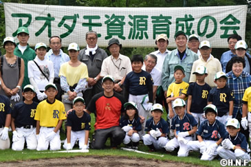 木製バットの原材料として使用される木材、『アオダモ』の植樹イベントが8月1日(月)、北海道栗山町の「栗の樹ファーム」で行われ、北海道日本ハムファイターズの栗山英樹監督が参加しました。NPO法人「アオダモ資源育成の会」が主催したもので、地元少年野球チームの栗山ロッキーズと継立ロビンス、栗山ロータリークラブから約80名が参加してアオダモの苗木100本を植えました。