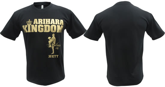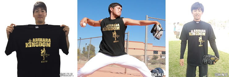 北海道日本ハムファイターズでは、有原航平投手の日本生命月間MVP賞(7月度)初受賞を記念して、知る人ぞ知るあのTシャツ、「ARIHARA KINGDOM Tシャツ」を期間限定受注販売いたします。アリゾナキャンプの際に周りの選手達がサプライズでオーダーし、有原投手がアドバイザリーを務めるZETT社が製作、本人を驚かせたこのTシャツは、投手陣の中でもちょっとしたブームになり、ファンの皆様からのお問合せも多かったアイテム。今回はZETT社のご協力により、本日よりオフィシャルオンラインストア、ファイターズオフィシャルショップON-DECK(オン・デック)、CLUBHOUSE(クラブハウス)などオフィシャルショップ4店舗にて、8月21日(日)までの受注販売となります。