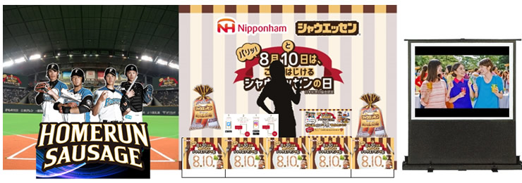 また、シャウエッセンやホームランソーセージのBigパッケージと一緒に、グラウンドの画像をバックに写真を撮影いただける撮影ブースも用意しています。ぜひお立寄りください!