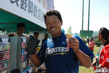 平沼選手は初めての道内遠征、試合後にファンサービス