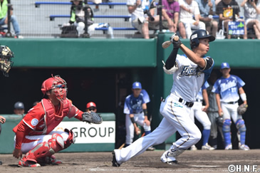 打線は2回に宇佐美塁大選手、3回に石川亮選手が左翼へソロ本塁打を放ちましたが、小刻みな相手の継投の前に連打が出ない状況が続きました。ようやく7回に1死満塁とチャンスをつかみ、再び石川亮選手の左犠飛で追加点を奪うと、瀬川投手の後を受けた田中豊樹、石川直也投手が相手の反撃を1点にしのいで逃げ切りました。