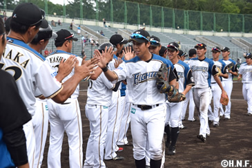 この試合は昨年ファイターズが「NPO法人北海道野球協議会」に加盟し、全国で初めて地域のアマ野球組織に加わって若年層の野球人口増などの振興策に取り組むことの一環で行われました。北海道社会人・大学選抜はファイターズを上回る9安打、無失策と攻守に渡って収穫の多い試合内容。加藤徹監督は「球際の強さや(打撃で)ミスショットしないのはさすがプロ。きょう体感したことをそれぞれのチームに持ち帰り、今後の成長につなげたい」と話していました。