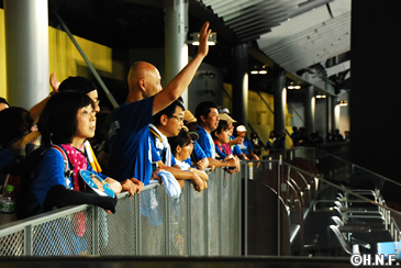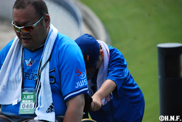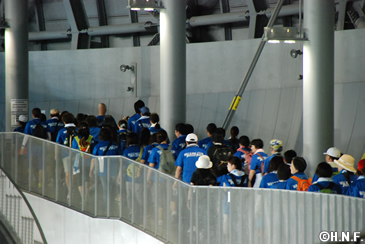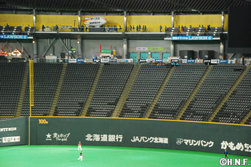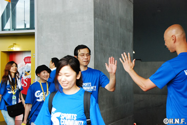 休憩の後は、札幌ドーム3Fを3周。ファイターズ選手の練習時間と重なり、選手の練習を見ながらのウォーキング。すると思いがけず、前日に先発した高梨投手が同じコースをジョギング中で、双方びっくりという嬉しいハプニング。何度もこのイベントに参加している皆さんも、「今回のコースは、札幌ドームの近くに綺麗な緑が広がっていたり、選手の練習が見られたり、いいですね」と大評判。