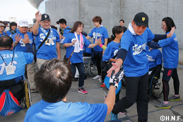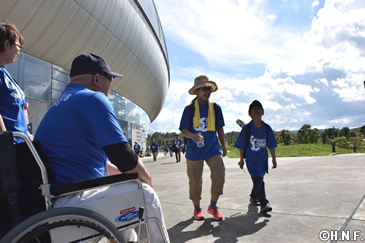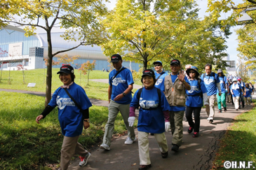 再び同じコースをたどり、スタートから約1時間半ほどで全員がリタイアすることなく札幌ドームに戻りました。閉会式では車椅子ソフトボールチーム「北海道ノースランドウォーリアーズ」の相澤秀典選手が「東京パラリンピックの公開競技採用に向けて頑張っていきますので、皆様のサポートをよろしくお願いします」とご挨拶。初めて参加した稲田さんは「普段なかなかこれだけの距離を歩くことはないですし、ファンの皆さんと自然を楽しみながらいい汗を流すことができました。意義のある活動ですし、来年以降もぜひ参加してください」と呼びかけていました。