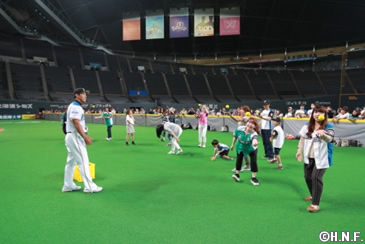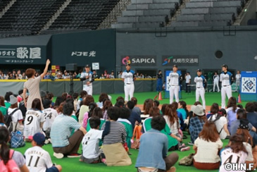 実施にあたり、事前に札幌市及び近隣市町村の全施設にご案内し、9月の札幌ドームでのファイターズ主催試合に1,544名をご招待。その中から182名がこの日のグランドイベントに参加しました。