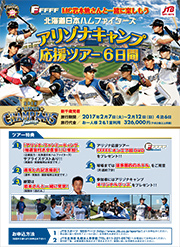 2017年2月5日(日)出発のANAプレゼンツ〈HBCラジオ斉藤こずゑさんと行く!アリゾナキャンプ応援ツアー〉と、2月7日(火)出発のJTB北海道企画実施〈北海道日本ハムファイターズ アリゾナキャンプ応援ツアー~HTB 「FFFFF」MC岩本勉さんと一緒に楽しもう~〉の2つのツアーが、いずれもファイターズの企画協力の元、実現。両ツアーとも特典として楽しいアリゾナファンミーティングにご参加いただけます。