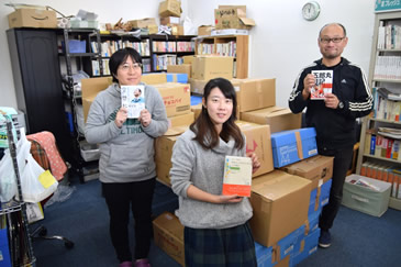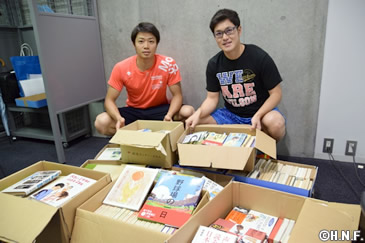 活動の一つである「読み終えた本をみんなでシェア」は、北海道内や東日本大震災で甚大な被害を受けた東北地方沿岸部の読書環境整備を進めている「北海道ブックシェアリング」の活動に共鳴し、“本があるまちづくり”のお手伝いができればと2014年にスタート。今年は7月8日(金)から9月30日(金)の期間に開催された30試合、札幌ドーム総合案内にてご家庭で読み終えた本の引き取りを行った結果、さまざまなジャンルの書籍がダンボール40箱分集まりました。荒井代表によると北海道は全国的にも無書店自治体の割合が高く、公共図書館設置率が低調、学校図書室の整備遅れも顕著になっているそうです。選手会役員の中島卓也選手は「札幌ドームご来場の際にご協力していただいた皆さんに選手一同、心から感謝しています。読書によって豊かな心をはぐくんでもらえるよう、これからもこうした活動に携わっていけたら」と話しています。