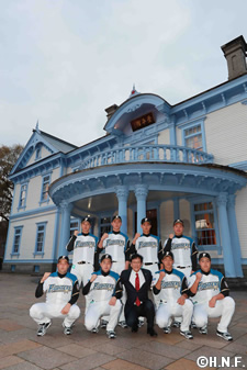 北海道日本ハムファイターズは11月22日(火)、2016年新入団発表を開催しました。会場は明治13年に建築され、明治初期のホテル建築の貴重な遺構として国の重要文化財に指定されている「札幌市豊平館」。大勢の報道陣が詰め掛ける中、真新しいユニフォームに袖を通した8選手は、初々しくも堂々と決意を語り、プロ野球選手としての第一歩を記しました。なお、新入団選手の背番号は下記の通り決まりましたので、あわせてお知らせいたします。