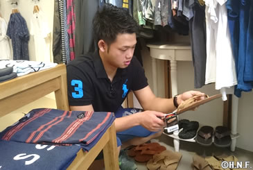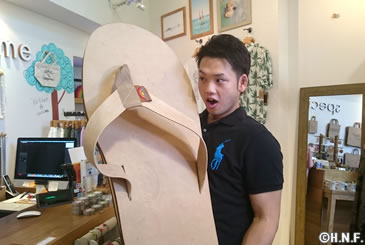 到着後、テレビの取材を兼ねて市街地に繰り出したのは谷口雄也選手。市内のセレクトショップで早速買い物を始めます。「ハワイで買おうと思っていたから持ってこなかった」とお目当てはビーチサンダル。コーナーの前で立ち止まると、熟考が始まりました。谷口選手が選んだのは茶色のサンダル。購入するやいなやスニーカーから履き替え、旅の目的を一つ果たしました。