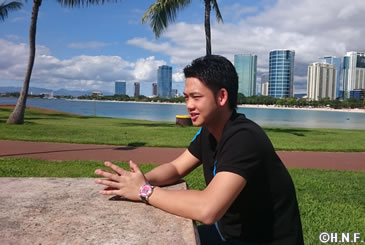 最後にアラモアナビーチパークを散歩しました。機内ではわずか2時間の睡眠、日本時間に直すと朝の8:00。移動初日という事もあり疲れが見えてきたところでしたが、海を目の前にすると元気が沸いてきます。買ったばかりのビーチサンダルでそのまま海に入ると、シーズンのストレスを吹き飛ばすかのようでした。