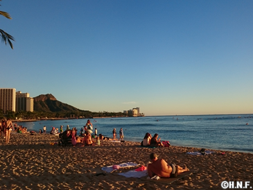 また、優勝旅行に参加したもう一人の助っ人外国人、ルイス・メンドーサ投手はワイキキビーチを堪能しました。「ハワイと言えばビーチ。初めてのハワイなので毎日ビーチに行く予定です」と眩しい太陽のもと話してくれました。しかし、本来はオプショナルツアーのマウイ島日帰り観光に参加する予定で、朝4:35の集合時間に間に合わずキャンセルするハプニングに見舞われました。それでも陽気なメキシカンは普段と変わらない様子でビーチに現れると、報道陣の問いかけにも気さくに応対しました。