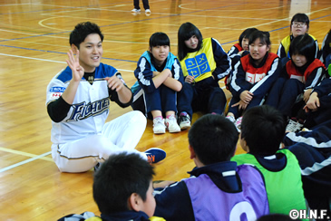 「夢の教室」はJFAこころのプロジェクト推進室と自治体が提携して展開する授業で、アスリートを中心に夢を持つことの素晴らしさを教壇に立って伝えていく取り組みです。2015年より一般社団法人日本プロ野球選手会と連携し、ファイターズの現役選手としては昨年の増井浩俊投手に続いての実施となります。