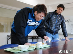 この企画に参加し、食べる事を通じて生徒と選手との結びつきを感じる事ができ、選手の出身地の特産や食べる事の大切さを学ぶ事ができました。また普段なかなか使用しない食材の中からメニューを考えたりし、生徒だけでなく職員も色々と学べるいい機会であったと思いました。