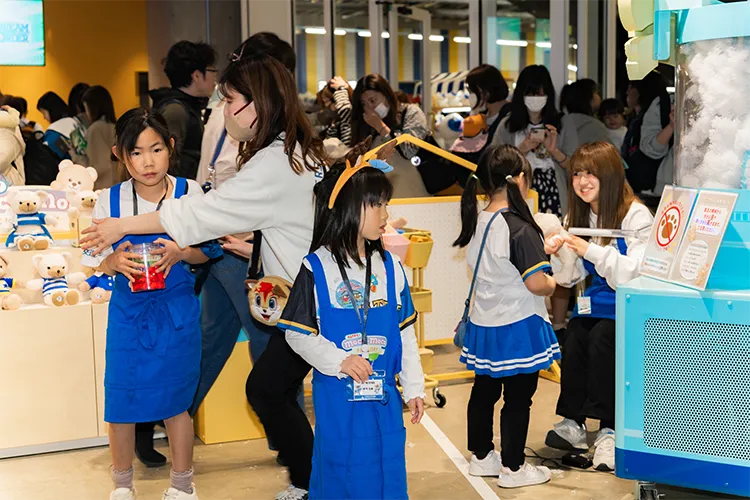 グッズショップのスタッフになろう!レジや商品の品出し、接客を通じて楽しみながら販売のコツを学びます。