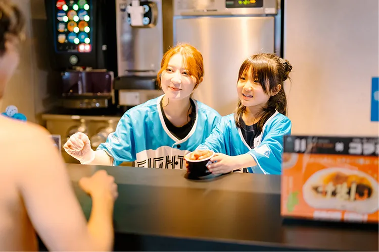 ドリンクを販売しよう!ドリンクの提供を通じて、ゲストの観戦体験をサポートするだけでなく、交流も楽しみます。