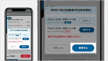 回数券を使用する座席が選択できましたら、「使用する」ボタンを選択してください。